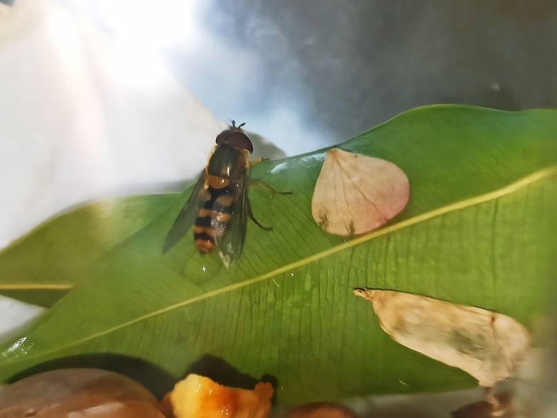 Уверена, многие знают, что в природе есть случаи, когда животное, насекомое или растение притворяются другим видом. Происходит некая игра в имитацию. На моем пути встреча с одним из таких видов случилась совершенно случайно, но это заставило меня быть наблюдательнее и внимательнее к тем, кто нас окружает. Через некоторое время после мухи «Тахины» папа вновь принес мне что-то. У своего гаража он заметил существо, похожее на гусеницу и принес домой. Была уже глубокая зима (начало февраля) и для меня оказалось странным, как маленькая жужалица смогла выжить в таких холодных условиях. На этот раз героем истории стала личинка: светло-желтое, ближе даже к бежевому – насекомое, не более 1 см в длину. Для нового друга я вновь соорудила «домик», обеспечила по возможности всем необходимым. Однако, если первая гусеница ела капусту, как и полагается, то это насекомое – не ело ничего. Так прошло около 10 дней, и я обнаружила куколку. Конечно, заранее я посмотрела в Интернете, кто может получиться в