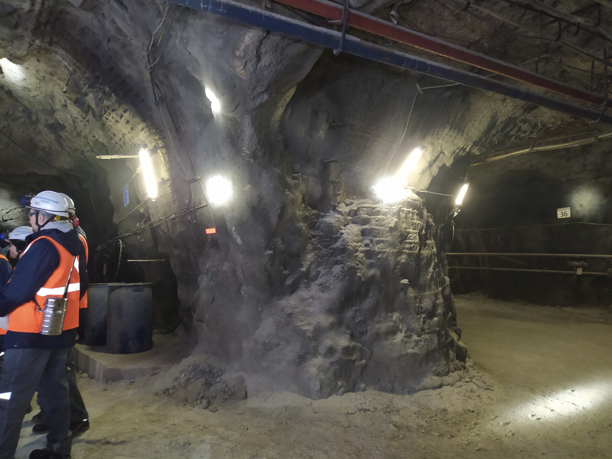 Для отработки навыков бурения в одном из забоев стоит огромный бетонный куб (а может, и стальной, не помню точно) размером не менее пяти метром каждая грань. У меня возник вопрос: как его сюда доставляли. Оказалось, делали на месте.