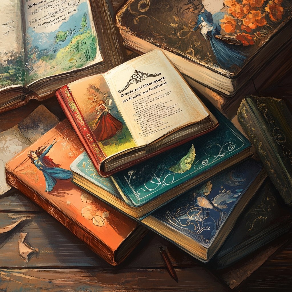 Литература — это отражение человеческих мыслей, чувств и фантазий, выраженное через разнообразные жанры. Каждый жанр имеет свои уникальные особенности, правила и стилистические приемы, которые позволяют авторам эффективно передавать задуманные идеи и настроения. В этом обзоре рассмотрим основные литературные жанры, их особенности и значение в современной и классической литературе. ----------------------- Роман Роман — один из самых распространенных и универсальных жанров, позволяющий автору развивать сложные сюжеты и глубоко раскрывать характеры персонажей. Романы могут быть различных направлений: исторические, романтические, детективные, научно-фантастические и другие. Особенности: - Развитый сюжет с множеством событий. - Глубокое раскрытие персонажей. - Подробное описание окружающей среды и атмосферы. Повесть Повесть занимает промежуточное место между романом и рассказом. Она короче романа, но при этом сохраняет некоторые его черты, такие как развитый сюжет и характеры. Особенности:
