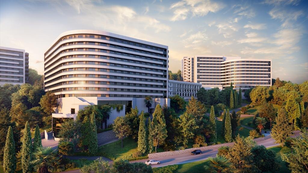 Локация отличная: тихий курорт, зелень, море близко, но не настолько, чтобы волной заливало ресепшен. Строит Рамаду опытный застройщик, не новичок — в Сочи он уже немало проектов реализовал.
