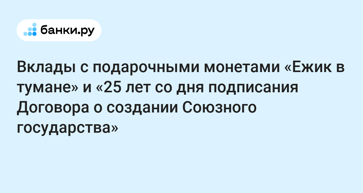 Вклады с подарочными монетами «Ежик в тумане» и «25 лет со дня подписания Договора о создании Союзного государства»