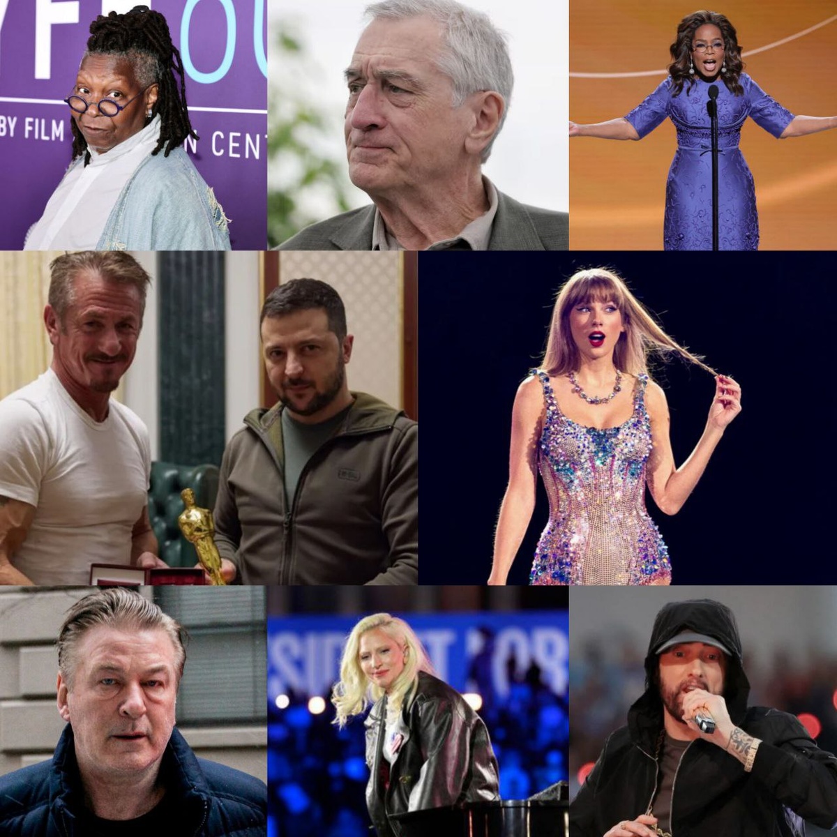 -Алек Болдуин -Шон Пенн -Сэмюэл Л. Джексон -Джордж Клуни -Вупи Голдберг -Барбара Стрейзанд -Леди Гага -Тейлор Свифт -Эминем -Мадонна -Ким Кардашьян -Опра Уинфри -Роберт Де Ниро -Леонардо Ди Каприо -Дженнифер Лопес -Джулия Робертс -Майли Сайрус Все эти знаменитости громкогласно обещали покинуть США в случае победы Дональда Трампа. Активисты в Сети продолжают составлять список потенциальных поуехавших, а заодно делают ставки но то, кто из звезд действительно выполнит свои "предвыборные" обещания.