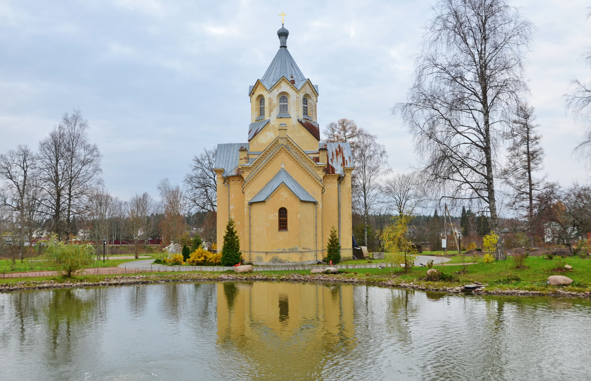 Это место называют колыбелью русского лесоводства. Именно здесь в первой половине XIX века после дательного изучения окрестностей Санкт-Петербурга было основано Егерское училище. В 50-х года позапрошлого столетия специально для большого любителя охоты императора Александра II был построен Охотничий дворец. Правда, облик его уже не столь великолепен как полтора века назад: в советское время здание использовалось под студенческое общежитие Лесотехнической академии. Однако если перейти по мосту речку Лустовку, можно увидеть нарядный храм в русско-византийском стиле. Церковь освящена во имя Происхождения Честных Древ Животворящего Креста Господня, в народе этот праздник называют Медовым Спасом. Разные периоды были в жизни этого храма в поселке Лисино-Корпус: было время, когда сюда приезжал император Александр II со свитой для участия в охоте. В годы Великой Отечественной войны немецкие захватчики устроили в церкви конюшню, потом храм использовался под жилье и склад. А ещё был период длиною