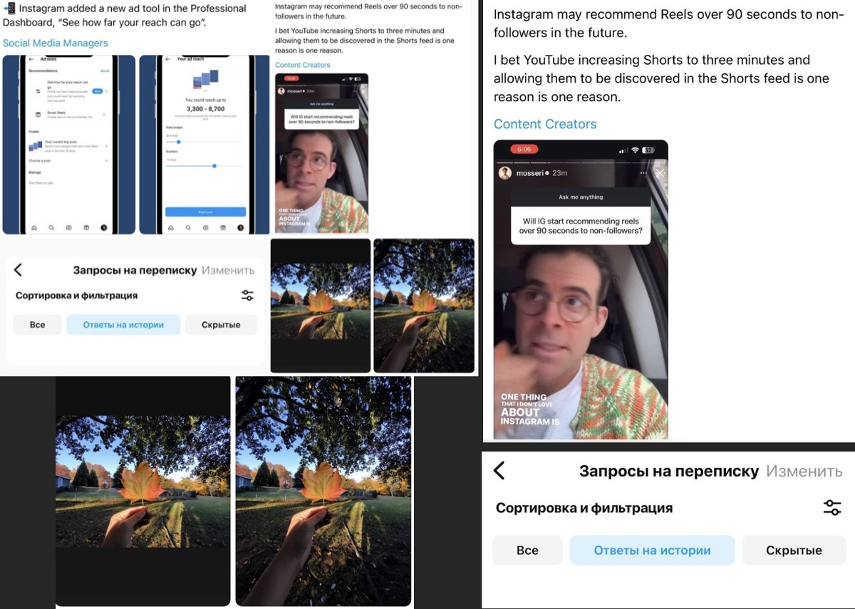 ✅ Появится возможность расширения изображений с помощью искусственного интеллекта в stories; ✅ Соцсеть будет рекомендовать пока ролики продолжительностью более 90 секунд тем, на кого не подписаны пользователи; ❗️Помните, я вам говорила, что скоро в тренде будут длинные видео. ✅ в Директе теперь есть вкладка «Ответы на истории», идеально для того, чтобы отслеживать вовлеченность в определенный день. ✅ Теперь можно увидеть потенциал публикаций «Посмотрите, как далеко может зайти ваш охват» в профессиональной панели управления; *Meta – запрещена в РФ