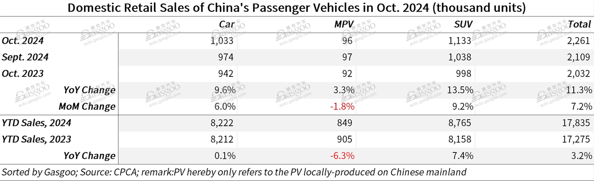 Пекин - Согласно данным Китайской ассоциации легковых автомобилей, в октябре 2024 года розничные продажи легковых автомобилей в Китае достигли 2,261 млн автомобилей, что отражает рост на 11,3% по сравнению с предыдущим годом и на 7,2% по сравнению с сентябрем.
