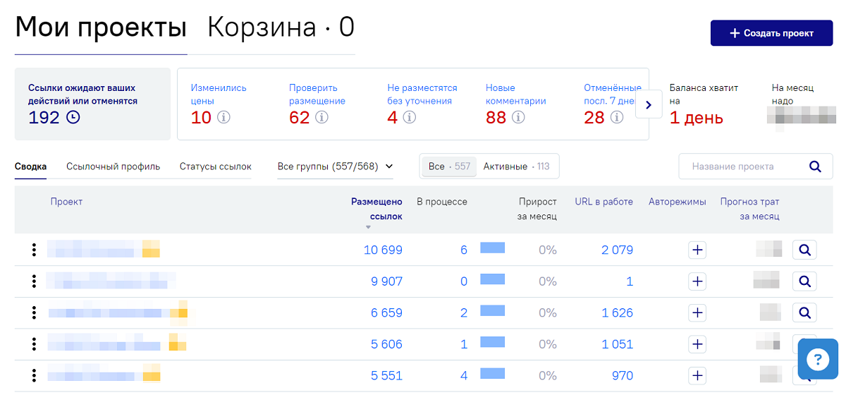 Держать ссылочный профиль под контролем и не упускать ничего важного пользователям нового интерфейса помогает универсальный дашборд – панель управления, которая отображает все статусы ссылок.