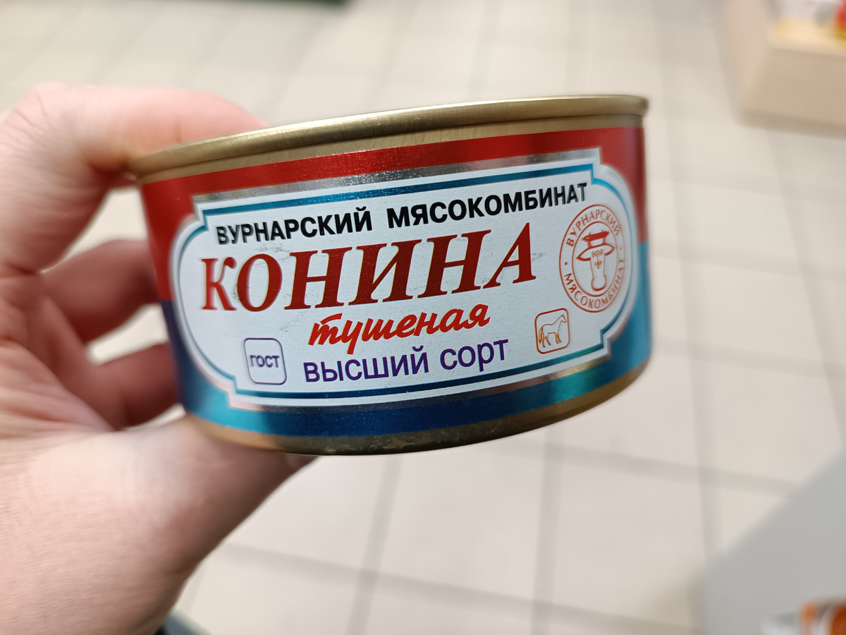 Скажу честно - впервые пробую конину. Просто не смогла пройти мимо полки с консервами, где увидела эту банку от "Вурнарского мясокомбината".