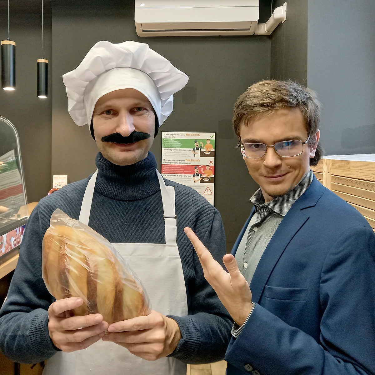 Сейчас он согласился воплотить персонажа с рекламных буклетов, который был создан художницей Юлией Журихиной. Пышные заметные усы, поварской колпак и фартук — что может быть лучше для образа итальянского пиццмейкера? Если увидите на улицах города вот такого очаровательного повара, знайте — за образом скрывается киноактёр, который искренне влюбился в пиццу, которую готовят в “Мон БатонЪ”. И именно поэтому он так увлеченно о ней говорит. А как ещё говорить о том, что искренне любишь?