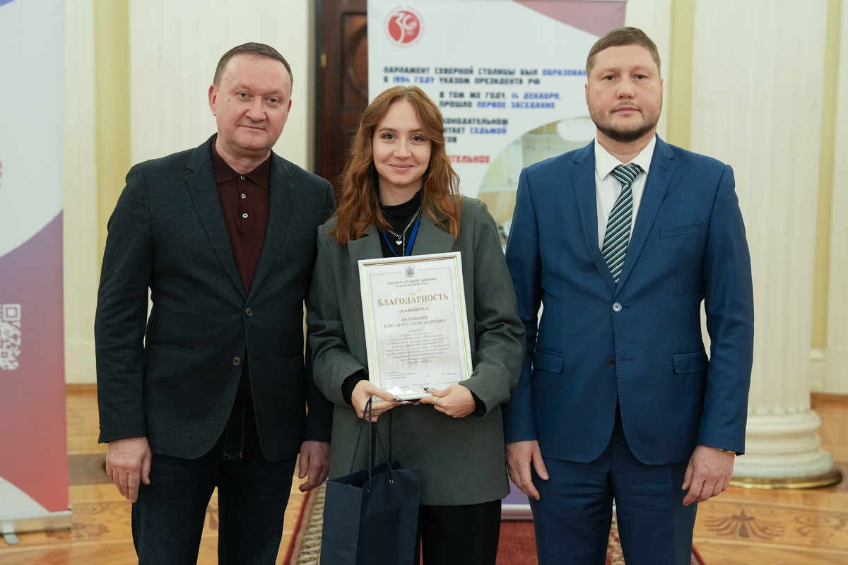 В Мариинском дворце прошли международные научные чтения «Синергия идей на Неве: новые горизонты междисциплинарных исследований», посвященные празднованию 30-летия Законодательного Собрания Санкт-Петербурга. Студентка магистратуры Института экономики и социальных технологий СПбГУПТД Елизавета Боханова на чтениях представила свой стартап «Ближе к детям», с которым заняла второе место.