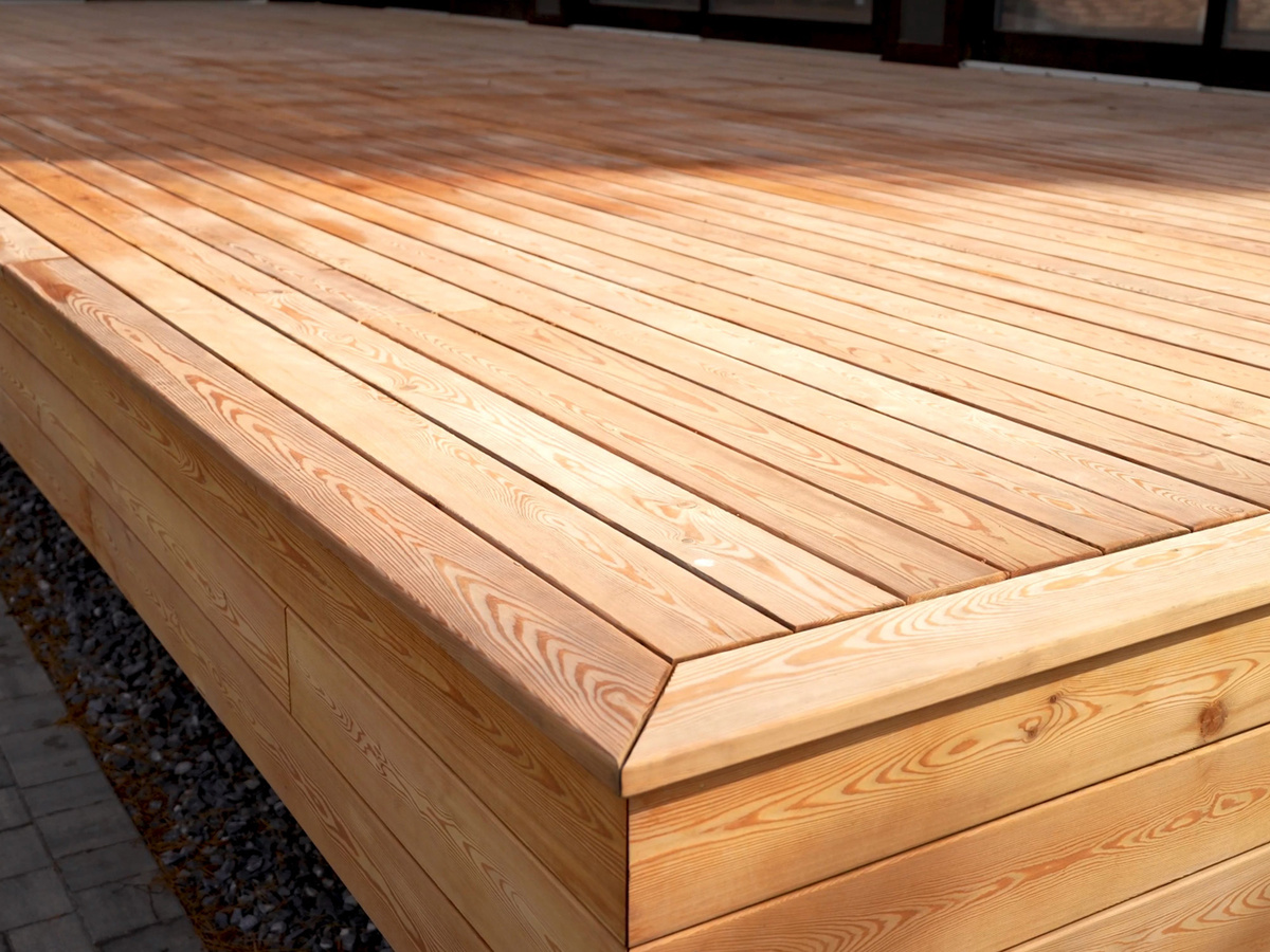 Палубная доска из лиственницы — прочный и долговечный материал для обустройства террас. Она имеет закруглённые края и шлифованную гладкую поверхность. Некоторые преимущества палубной доски из лиственницы: «Лиственница Ру» предлагает доску сорта «Экстра», «Прима», «АВ», «ВС», «D» длиной от 2 до 6 метров. Ширина изделий — 90, 120, 140, 190 мм.