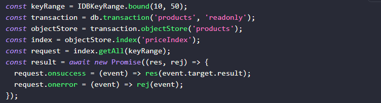 Индексация позволяет быстро искать данные по заданным критериям. IndexedDB и SQLite в WebAssembly поддерживают индексацию по умолчанию. Например, в IndexedDB можно выбрать товары по диапазону цен: