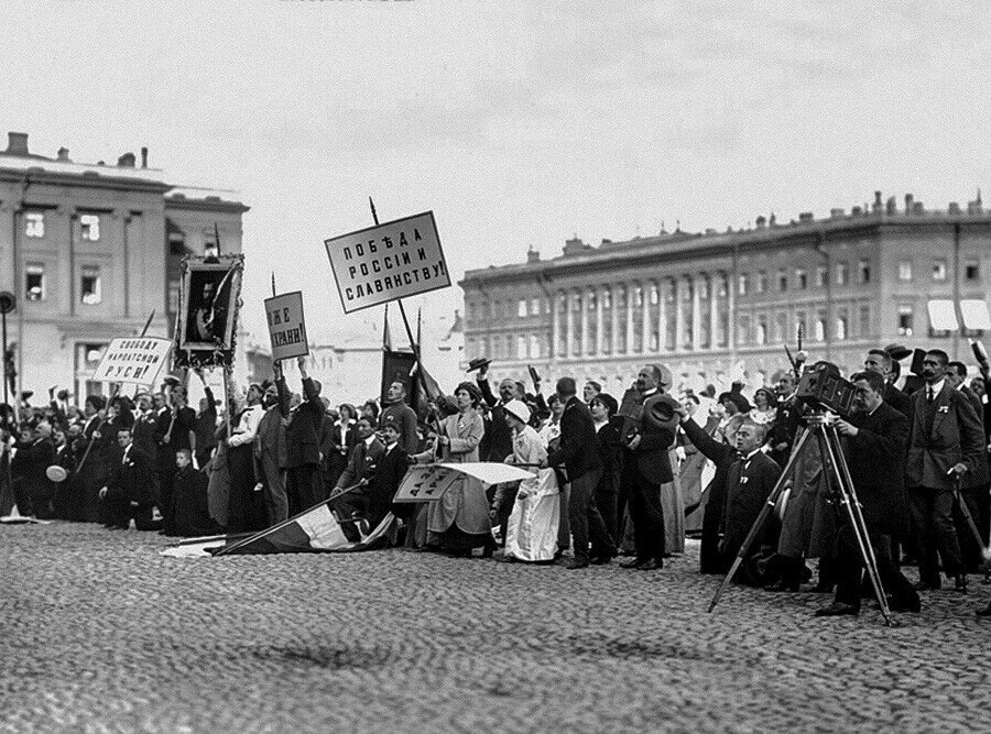 Все слои населения в едином порыве пели "Боже царя храни". Как написал великий князь Александр Михайлович, что за 20 лет царствования не было такого единения царя и народа. В разговоре Николай II очень искренне радовался этому, у него даже вырвалось признание, что что он мог избежать войны, если бы решился изменить Сербии и Франции, но не захотел.