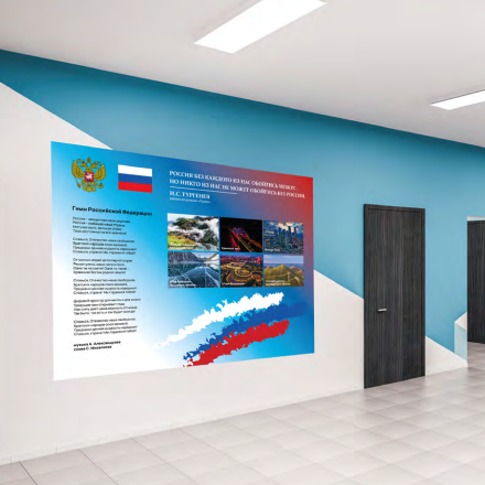 1. Традиционный стенд. Самый распространенный и простой вариант — это классический стенд с размещенной информацией. Здесь можно расположить государственные символы, информацию о героических подвигах, знаменательные даты. Однако, чтобы такой стенд не выглядел скучно, его можно оживить. Например, сделать раздел с изменяющимися рубриками, которые обновляются к каждому важному событию.