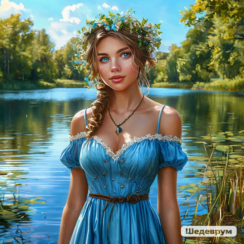 По приезду, перекусив и немного отдохнув, друзья пошли знакомится с деревней. Места им очень понравились. На краю, за последним домом, виднелась витиеватая тропинка, уходившая в лес. Решив исследовать сразу всю окрестность, парни прошли через небольшой перелесок и вышли на полянку. Разговаривая о чём- то своём и весело смеясь, они не сразу заметили девушку, собиравшую цветы на этой полянке. В белом сарафанчике, с распущенными, слегка вьющимися, длинными волосами, она больше напоминала сказочное видение или фею! Стараясь не напугать девушку, Никита и Макс, подошли поближе и поздоровались. Все ребята были примерно одного возраста, поэтому быстро нашли общий язык. Оказалось, что девушка живёт неподалёку, в соседней деревне, и зовут её Олеся. Молодые люди вежливо предложили проводить «лесную фею». Они пересекли берёзовую рощу и вышли к большому, необычной формы озеру. Дальше Олеся от провожатых отказывалась. Махнула куда – то в сторону рукой и сказала, что до дома осталось 5 минут ходьбы.