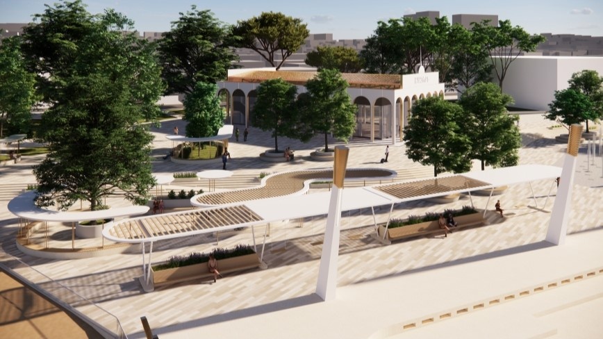 На музыкальной набережной будет много теневых навесов, которые подсветят вечером.