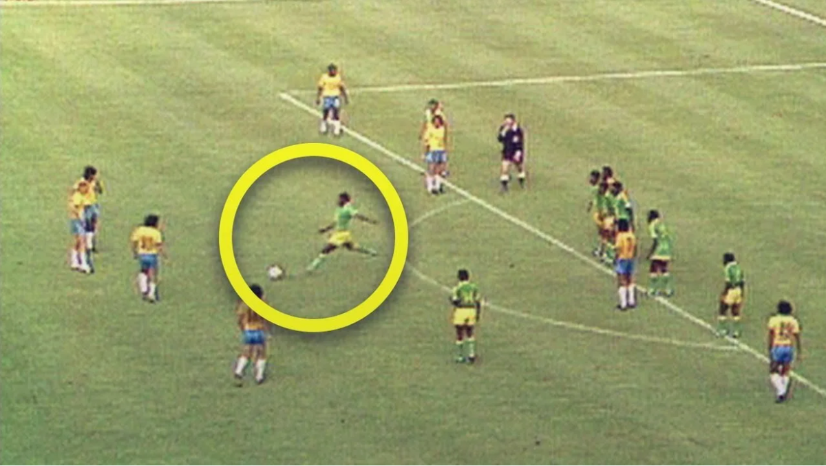 Но этот штрафной запомнился вовсе не мастерством двух бразильцев. Тут пробил звездный час Илунги Мвепу. Когда раздался свисток, заирский защитник выбежал из стенки и, на глазах у озадаченных бразильцев, выбил мяч на трибуны. Судья показал ему желтую, штрафной был перебит. Бразильцы вскоре забили столь нужный им третий гол, а к Мвепу пришла всемирная популярность.