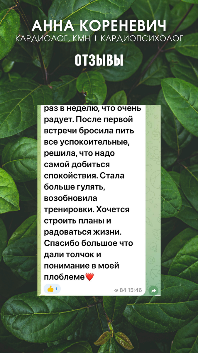 С уважением, Анна Кореневич, врач-кардиолог, кандидат медицинских наук и медицинский клинический психолог. Эксперт по устранению причин болезней, симптомов болезней, а также опасных для жизни последствий болезней.