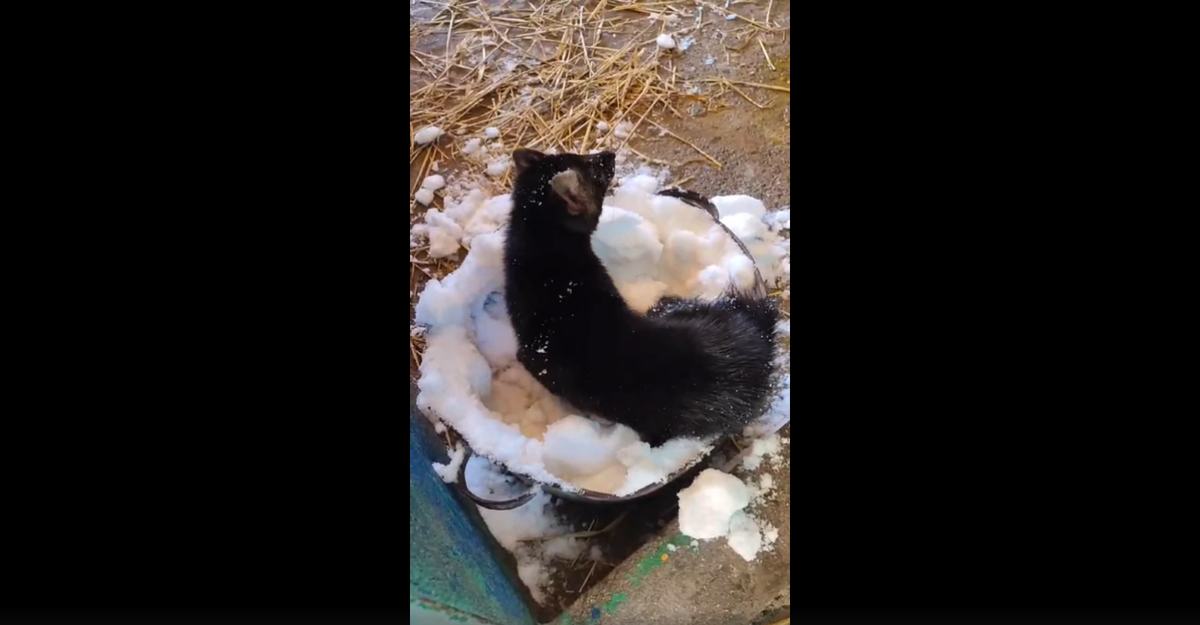 Купание соболя Греи в снежной ванне показали в Липецком зоопарке