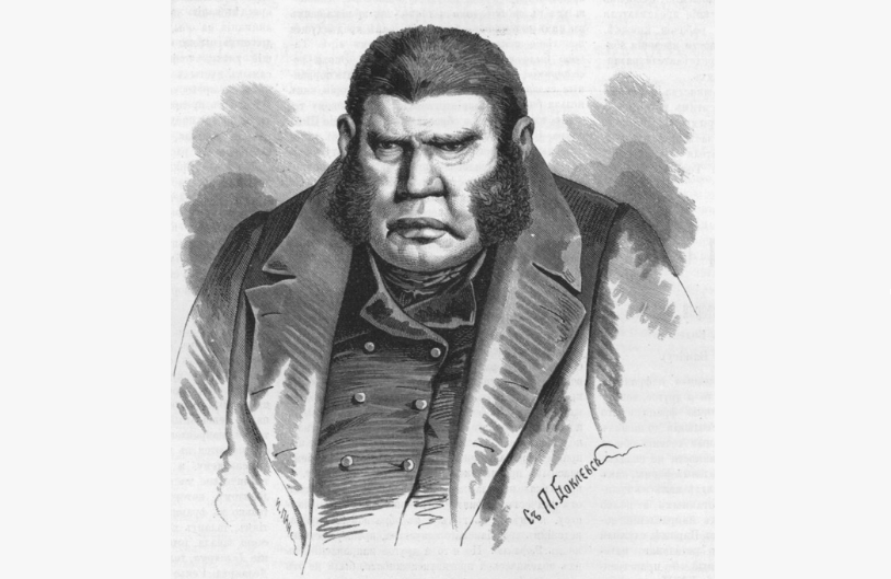 Наконец-то главный герой добрался до Собакевича. Персонаж противопоставляется предыдущим персонажам. Он сопоставляется с Медведем, символом народных сказок. Гоголь стремился показать фольклорный образ русского мужчины «богатыря», но не привычного, а «скатившегося». Он как бы подчеркивал, что его современник – человек, способный лишь на словесные подвиги.
