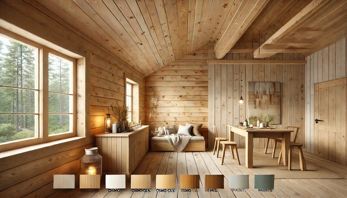 Покраска деревянного дома изнутри — это не только способ придать интерьеру эстетичный вид, но и защитить натуральное дерево, продлить срок службы материалов. Рассмотрим, чем и как лучше всего красить деревянные поверхности, чтобы сохранить натуральность, но при этом добавить современный стиль. В статье мы обсудим использование масел и красок от известных брендов, таких как Osmo и Hemel, а также порекомендуем подходящие цветовые решения для стен и потолка. Для деревянных поверхностей внутри дома идеально подойдут специальные масла и краски, которые защищают от влаги, грязи и износа, не скрывая при этом текстуру дерева. Масла Osmo Масла Osmo — это продукты высокого качества, которые глубоко проникают в структуру дерева, создавая естественное покрытие, которое не трескается и не отслаивается. Основные преимущества Osmo: Рекомендуется использовать масла Osmo для покрытий, где важна натуральность, таких как стены, потолки и декоративные деревянные элементы. Масло легко наносится кистью или