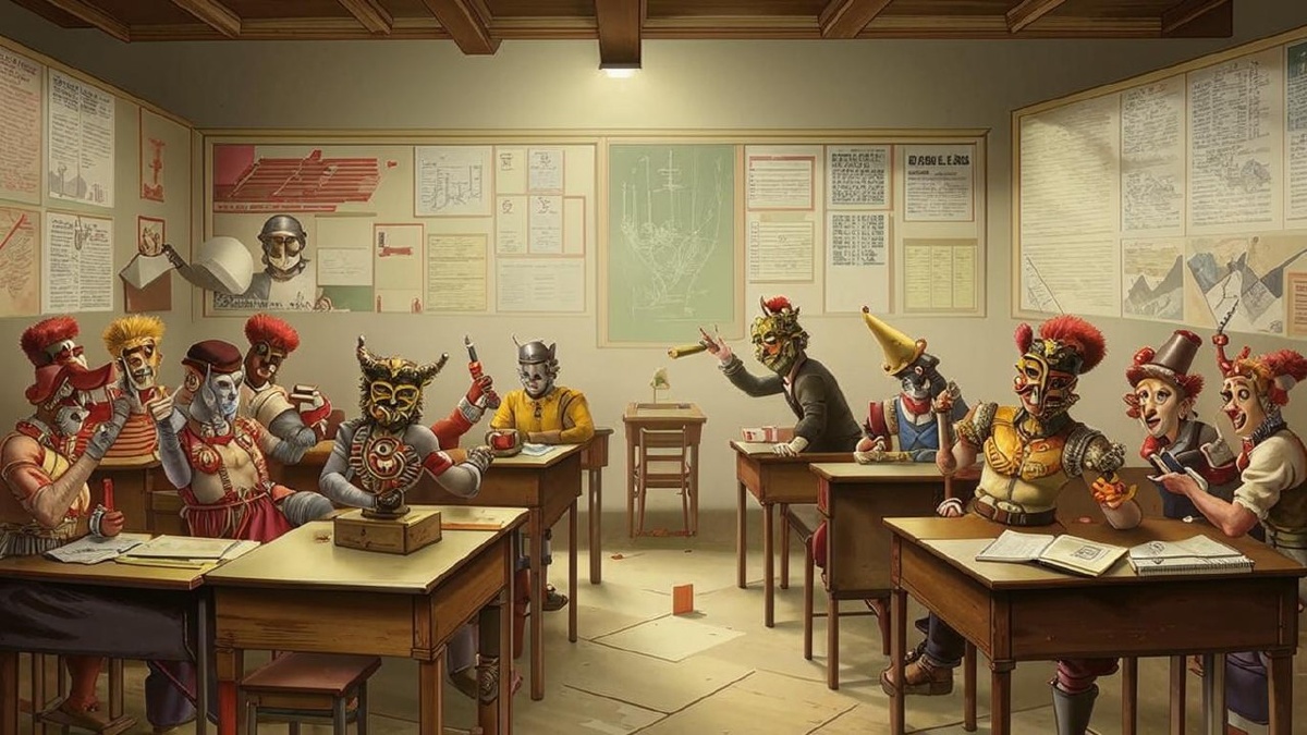 Не знаю, может, я кому-то Америку открою. Есть всякие забавные сказки, теории заговора, что нами управляет теневое правительство (рептилойды), и от нас правду скрывают... Кто-то верит, кто-то просто усмехается. Но есть один реальный заговор, в котором участвуют все. На самом деле все. Вот ваш сосед - точно участвует. Вы едете в автобусе - все пассажиры в заговоре. И водитель. Приходите в магазин - кассир тоже в заговоре, совместно со всеми покупателями в очереди. Люди, которые участвуют в заговоре, не придумывают явок и паролей, не переглядываются многозначительно, не носят на лацканах брошей с тайными знаками, не переходят на шифрованный язык при посторонних. Иначе этот заговор давно бы раскрыли. Нет, я не псих, который бегает с шапочкой из фольги на голове (а если и надену такую шапочку, то не забуду её заземлить - я же не псих). Интересно, что за заговор такой? Школа - это спектакль. А люди в ней - актёры. Да-да, все учителя - актёры. Директор тоже актёр. И завучи. Я уж не гово