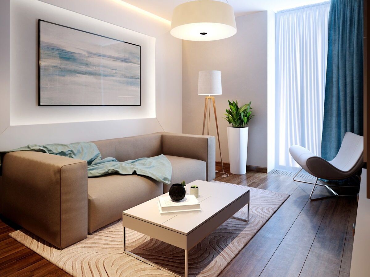 Совсем крошечная гостиная. И такой вариант вовсе не редкость. Что же, будем работать и с этим. Придется отказаться от самых крупных по определению предметов мебели – чаще всего это секционный диван. Найдите альтернативу в виде диванчика-канапе или кресел-кроватей. Наполняя пространство мебелью, обеспечьте главные условия: лаконичность и плавность линий. Никакой помпезности и вычурности, кричащих цветов. Продумайте более-менее значимые акценты, чтобы как-то оживить скромное и бесхитростное пространство. Навскидку: яркая ТВ-панель, произведение искусства, шкаф необычной формы (и нетривиального цвета).