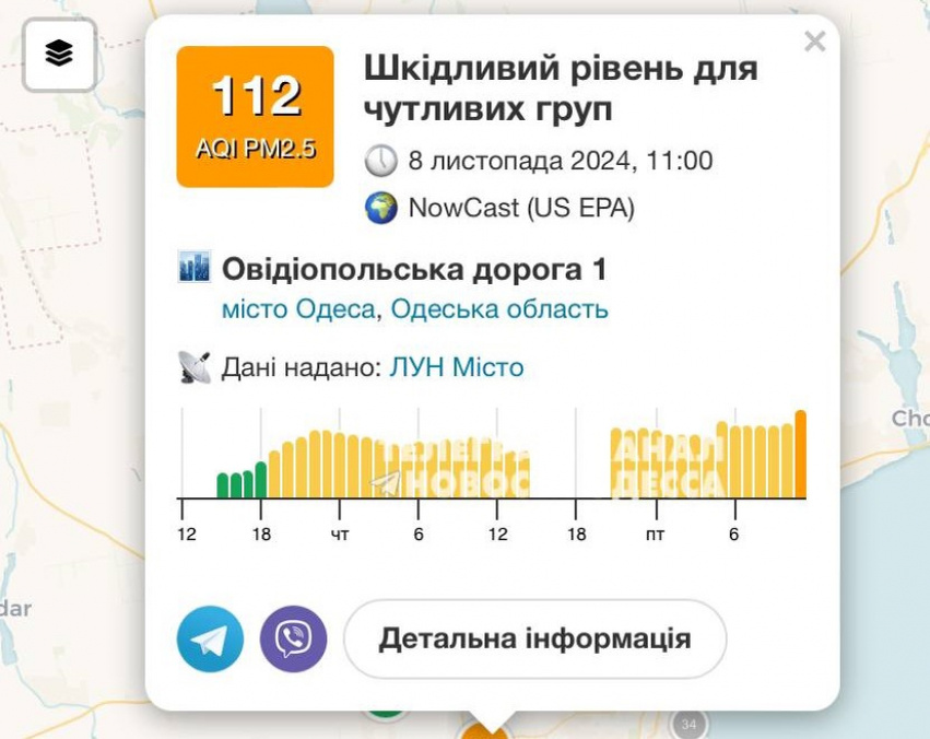 Зафиксирована опасная концентрация загрязняющих веществ. Причины данного явления в настоящее время устанавливаются. Не исключено, что ухудшение связано со вчерашней работой украинских ПВО. Частицы PM 2.5 настолько мелкие, что они легко проникают в легкие при дыхании. Благодаря мелким размерам они чаще преодолевают барьеры внутри дыхательной системы (волоски внутри носа, слизистые поверхности и т. д.) и достигают альвеол. Склонным к аллергическим реакциям лучше не проветривать помещение и поменьше находиться на улице.