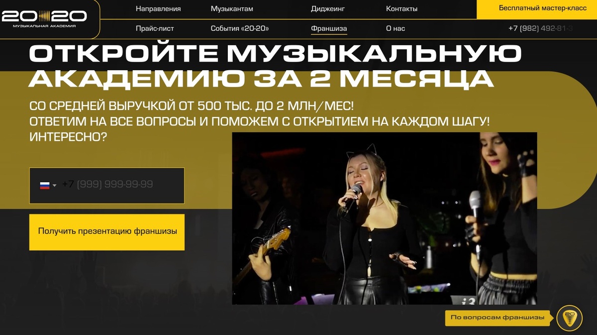 К нам в агентство RA-Pisarevskogo.ru обратилась директор музыкальной академии 20-20 с задачей привлечения заявок на покупку франшизы в РФ
