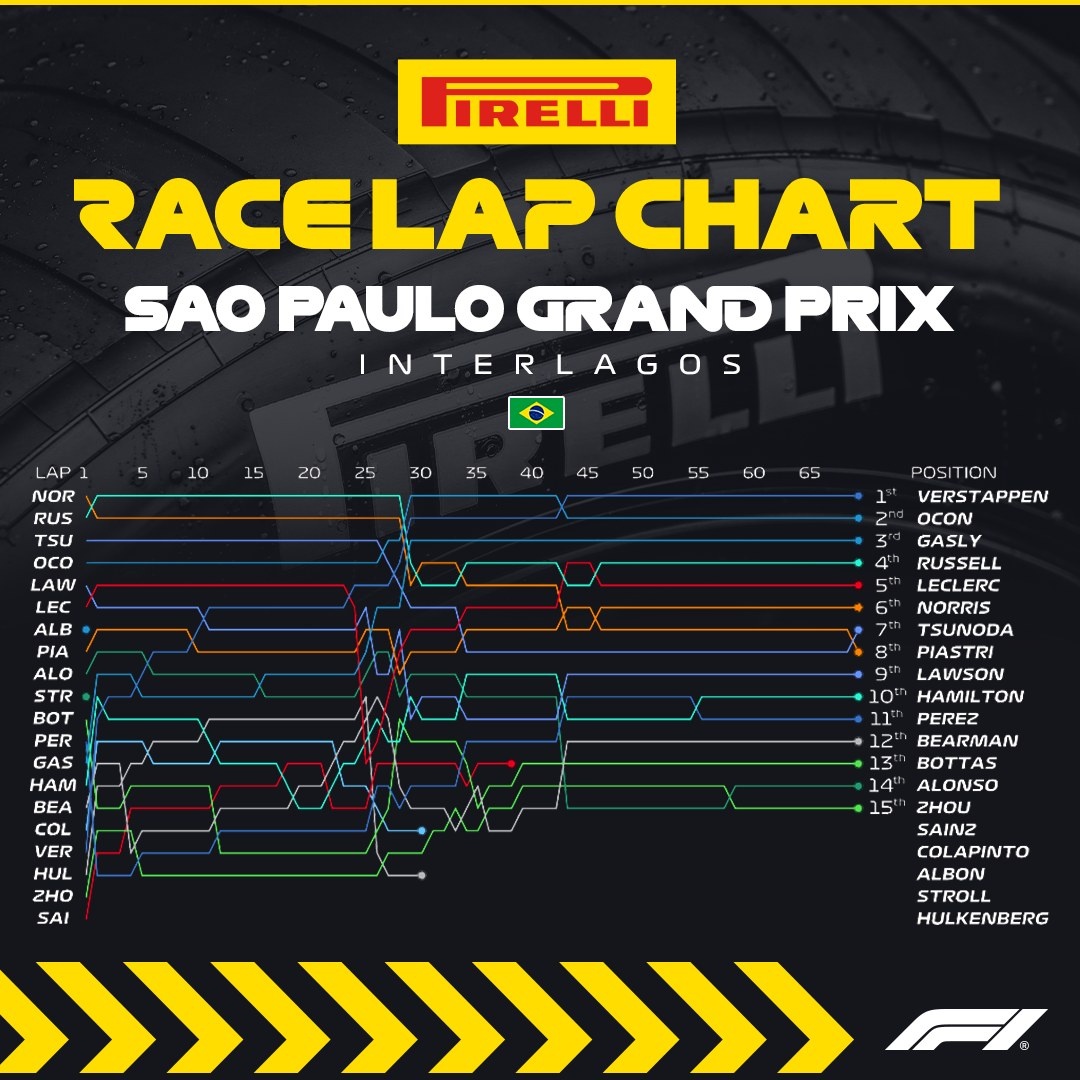 Окон, Гасли, Расселл и Ферстаппен сразу поняли: красные неизбежны, и даже на полностью дождевых будет сложно. Тем не менее, «Мерседес» не взял на себя риски и зазвал Джорджа на пит-стоп против его желания – повторив и опасения, и стратегию «Макларена». Цунода на «РБ» вообще попробовал альтернативу с полностью дождевыми и в конце отыгрывал по 4 секунды с круга.