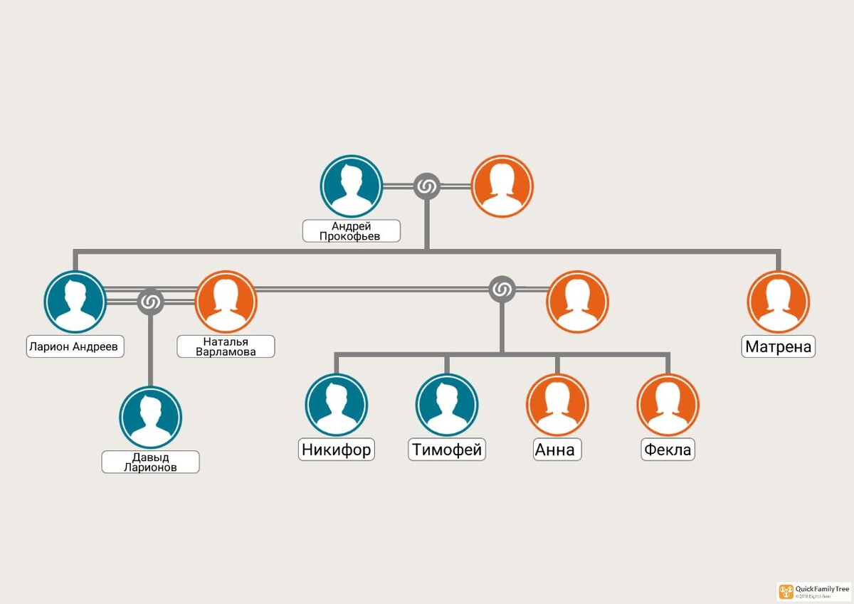 Старший сын Давыда Ларионовича - Алексей женился первым. Жену его звали Екатерина Кирилловна. Примерно в 1855 - 1856 году у них родился сын Андрей.