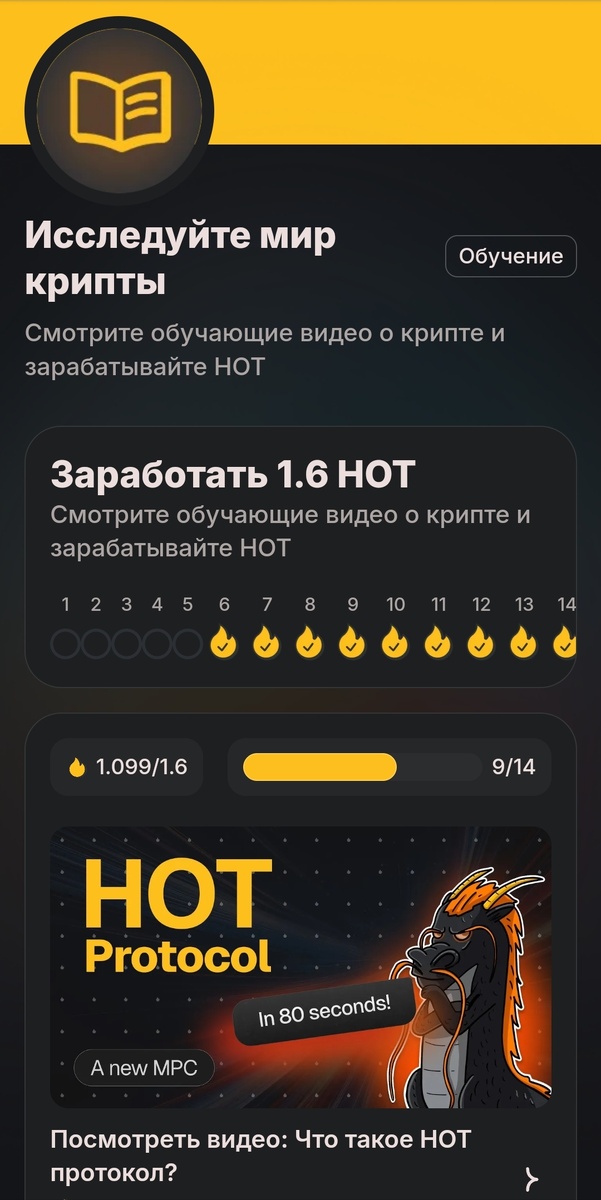 Список всех актуальных кодов и кодовых фраз для заданий в Hot wallet. 1.Что такое HOT протокол? What is HOT Protocol? Код: SIGN 2.Удивительные истории из мира криптовлют About crazy crypto stories Код: IMAGINATION 3.Почему криптовалюты волатильны? About crypto volatility Код: POPCORN 4.Кто такие маркетмейкеры? Who is Market Makers? Код: PROFIT 5.Что такое BNB сеть? What is BNB Chain? Код: Network 6. Что такое аирдроп? What is Crypto airdrops? Код: FREE 7. Что такое мемкоин? What are Meme coins? Код: HYPE 8. Что такое блокчейн ТОН? What is TON Blockchain Код: FAST 7. Что такое блокчейн Solana? What is Solana Blockchain Код: Marketplace 8. Что такое свапы? What is Crypto swaps? Код: Commissions 9.Что такое Airdrop в Крипте и как он работает? What is Airdrop in Crypto and How Does it Work? Код: Discover 10. Экосистема блокчейна. Blockchain Ecosystem Код: Community 11. Как начать в HOT wallet? Beginners guide HOT Wallet Код: Seed phrase 12.Как тратить HOT на балансе? How t