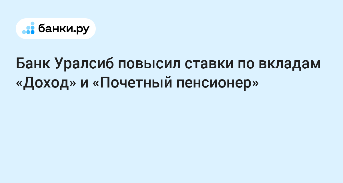 Банк Уралсиб повысил ставки по вкладам «Доход» и «Почетный пенсионер»