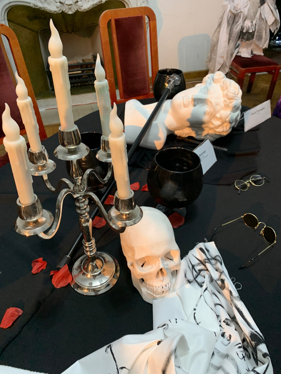 Мы проходим в зал с камином и роялем и здесь мы становимся свидетелями фрагмента «Пир во время чумы» из нового спектакля.
