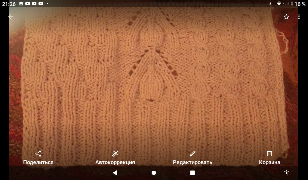 Узор, как вы видите, незатейливый. Лицевые и изнаночные справа, косы слева. А вот центральную часть, этакие бутоны я придумала сама. Там из одной центральной петли вывязываем нексолько, а потом их убираем, компенсируя накидами по обеим сторонам. И обводим бутон полосками. Центральную петлю, естественно, провязываем поверх остальных. Достоинством этого изделия является обилие декоративных элементов, которые при своей простоте создают эффект насыщенности. Связано из хлопковой нити, по 100 гр в моточке, купленной в ф-прайсе. Ушло, кстати, много,граммов 700, так что изделие тяжеловатое. Вязала в две нити.