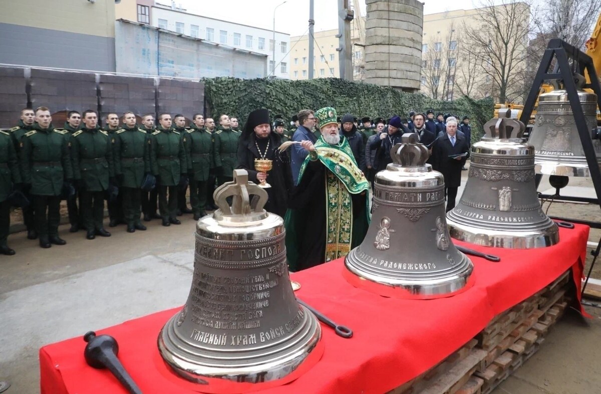 8 ноября в Петербурге на территории Военной академии связи имени маршала Буденного прошла церемония освящения колоколов, а также их поднятие на звонницу строящегося храма войск связи во имя Сергия Радонежского. Торжественная церемония освящения колоколов строящегося храма прошла при большом стечении народа. На мероприятии присутствовали руководящий состав войск связи, курсанты и преподаватели академии, депутаты Законодательного собрания Санкт-Петербурга, ветераны и представители духовенства. Как рассказали «Петербургскому дневнику» руководители учебного заведения, сегодня храм готов примерно на 80 процентов, для него отлиты и освящены колокола, вскоре начнется процесс обустройства внутреннего убранства. Также в присутствии СМИ состоялась церемония поднятия колоколов на звонницу храма в честь Сергия Радонежского. Военные рассчитывают, что храм будет полностью готов к концу 2025 года, и заранее пригласили на его открытие губернатора Петербурга Александра Беглова. Сам губернатор оценивал