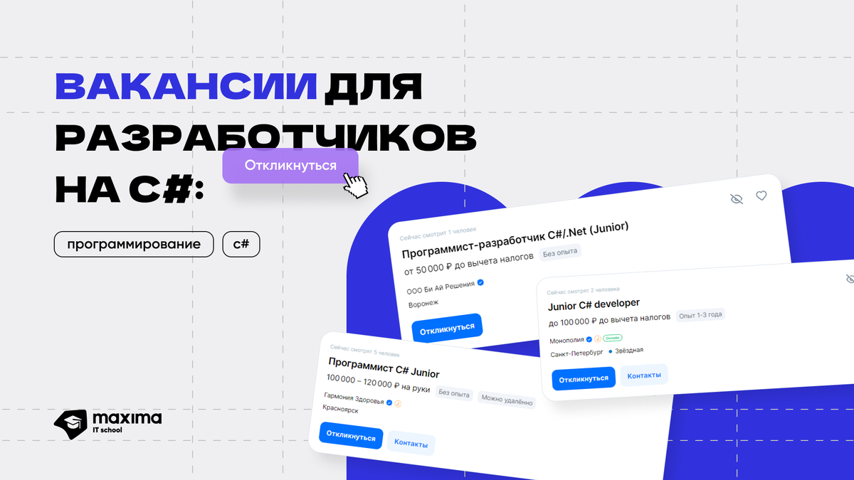 Независимо от того, находитесь ли вы в активном поиске работы сейчас или только начинаете изучать C#, важно следить за актуальными вакансиями на этом языке программирования☝️ Изучение требований работодателей поможет максимально эффективно подготовиться к трудоустройству. Согласно данным с сайтов HeadHunter, Superjob, LinkedIn, Rabota.ru, в России открыто более 500 вакансий для Junior C# Developer. Основные требования к кандидатам: — Уверенные знания C# и основ объектно-ориентированного программирования (ООП) — Опыт применения паттернов проектирования — Опыт разработки веб-приложений — Навыки работы с базами данных (SQL), умение писать SQL-запросы — Навыки работы с библиотеками и фреймворками (Entity) — Портфолио или проекты на GitHub — Коммуникабельность и навыки работы в команде (soft skills) — Английский на уровне чтения технической документации А за знаниями и практическим опытом приходите в Maxima! Живое обучение, преподаватели — действующие senior-разработчики, стажировка в IT-ко