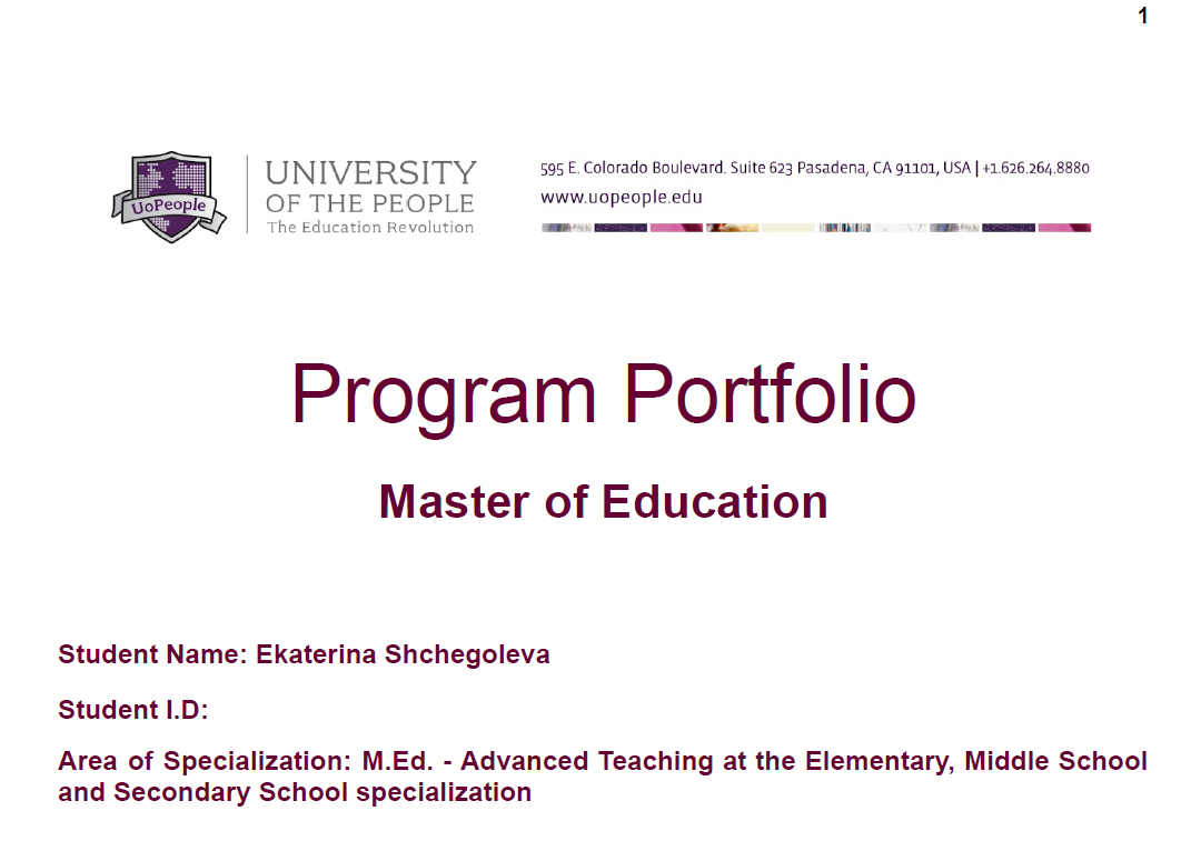 Welcome the UoPeople Master of Education Portfolio Template. As a Master of Education student, you are required to create a portfolio that you start in your very first class and submit near the end of the program. You’ll contribute a minimum of three artefacts to your portfolio in every class you take (although you can add more rows to save more if you wish). At the end of your portfolio, you will also complete a Philosophy of Teaching Statement. This allows you to save useful readings and reflect on previous work when you’re teaching so that you can continue to draw on what you learned.