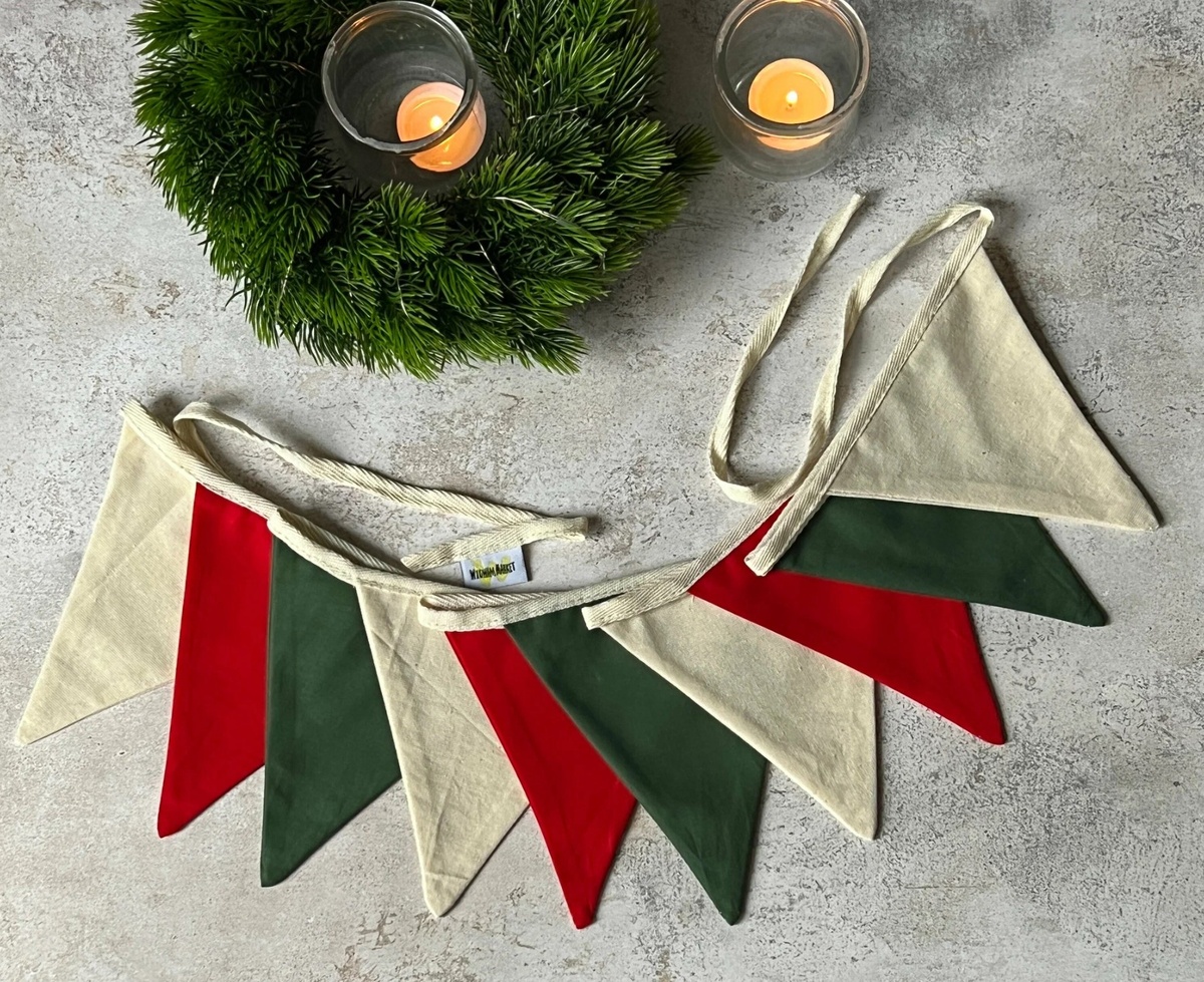 Хотя мне кажется, что новогодние флажки уже есть в каждом доме, всё же напомню, что этот бюджетный сувенир получить приятно в любом возрасте. Многие производители наносят ретро рисунки или открытки СССР Зарубина, которые особенно понравятся тем, кто застал то время. Исполнение обычно бумажное или деревянное. Упаковка: мешочки, бумажные или фанерные коробочки. Но в моём обзоре я покажу не их. Уж слишком эта попса рябит на главных рекламных страницах маркетплейсов последние пару лет. Я покажу тканные флажки, которые уютно впишутся в новогодние интерьеры и не будут создавать визуальный шум среди остального цветного новогоднего декора.