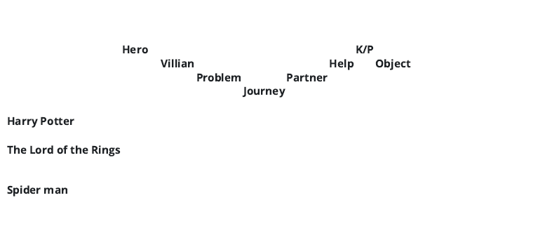 And discuss each element of the story. To maximise the involvement of each student in the discussion, it is a good idea to first ask thegroups to define each element, e.g. ‘The hero is Harry Potter. He is kind, friendly, etc.’. Working through the definitions will help to focuson the difference between hero and villain, problem and journey.