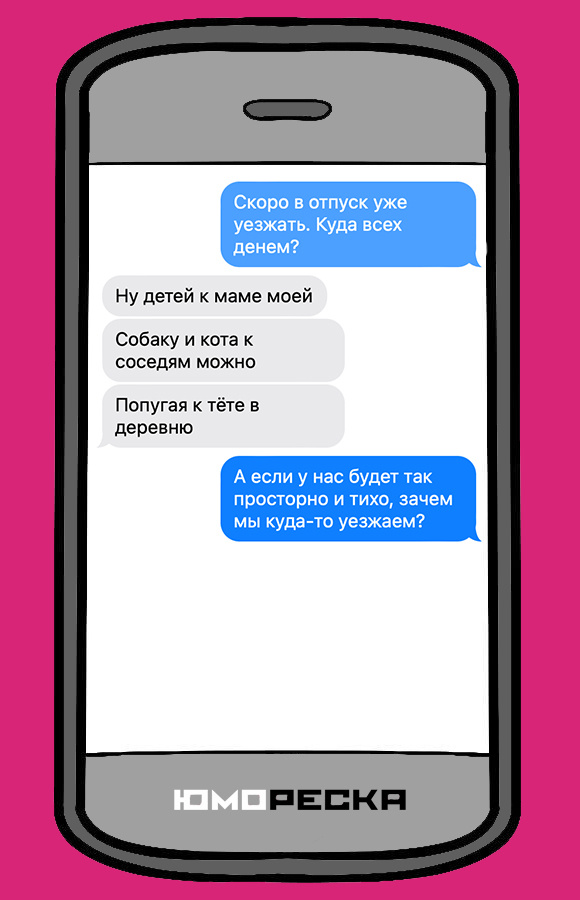 Здравствуйте, любимые читатели! Насколько вы предсказуемы? Вы любите, когда ситуации находятся у вас под контролем и когда близкие точно знают, чего от вас ожидать? А может наоборот, вы стараетесь никому и ничего не сообщать о своих планах, намерениях, любите сюрпризы и неожиданные повороты? Одно мы знаем точно. Вы любите хороший юмор. И повод повеселиться у вас есть: вашему вниманию 7 смешных переписок, которые точно не оставят вас равнодушными. Юмористического вам настроения и давайте начинать! Чаще всего мы хотим отпуска не для того, чтобы путешествовать, наслаждаться видами и лежать у моря. А для того, чтобы лежать. Чтобы сидеть. Чтобы не работать! А в идеале ещё и не заниматься домашними делами, даже не думать о них. Уже хотите на отдых? Иногда ситуации, с которыми мы сталкиваемся, действительно ставят нас в тупик. Следующая смешная переписка вполне могла быть посвящена реальным событиям. Никогда не знаешь, что может произойти. Люди, у которых чего-то много, приобретают множество
