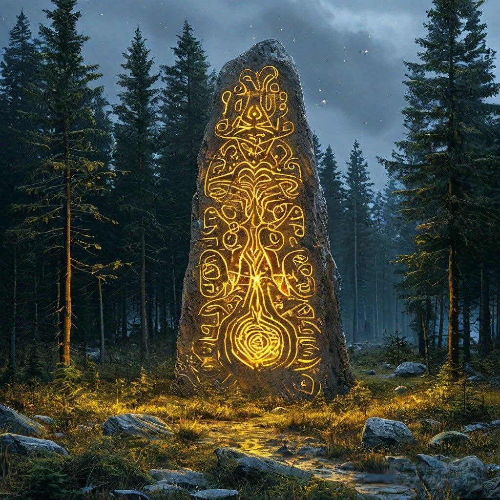 Выйдя на залитую светом поляну, Вениамин оказался в окружении высоких трав, колышущихся под невидимым ветром. Небо над головой было необычного тёмно-синего оттенка с едва уловимой фиолетовой дымкой и казалось полным звёзд, таких ярких и близких, что, казалось, протяни руку — и коснёшься их. Вдалеке возвышались горы, их тёмные силуэты отчётливо выделялись на фоне мерцающего неба, словно вырезанные из ночи острыми неестественными контурами. Посреди поляны возвышался огромный камень, покрытый древними символами, которые мягко светились золотым светом. Вениамин почувствовал необъяснимое, но настойчивое притяжение, исходящее от камня. Любопытство, смешанное с лёгкой тревогой, взыграло в нём, и он медленно подошёл ближе, чувствуя, как артефакт в его руке пульсирует, словно отзываясь на магию, пропитавшую это место. Он вгляделся в символы, каждый из которых был сложен и загадочен, словно узоры, которых он никогда прежде не видел, но почему-то понимал. Символы словно рассказывали историю — ист