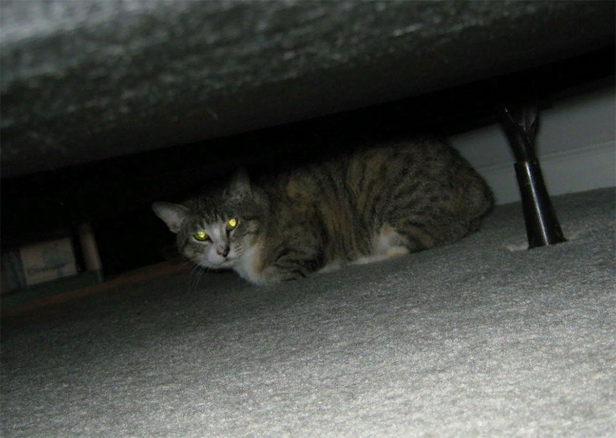Когда кот в ужасе убежал от хозяина, доставшего переноску, пылесос или иной объект кошачьего стресса, и забился в дальний угол под диван так, что сам вылезти едва может – тут все понятно, кот испугался и нырнул в первое попавшееся на пути укрытие, протиснувшись в него до упора. Это все внезапный кошачий испуг, он так выражается, это нормально. Но почему же тогда абсолютно довольная жизнью (по крайней мере с виду) кошка порой обнаруживается, к примеру, добровольно зажатой между диванных подушек? Или кот, который с детства обласкан, ни с того ни с сего залезает в тесную картонную коробочку, и отказывается ее покидать час-два, демонстрируя хозяевам странное выражение лица? Если, конечно, кошка не потеряла аппетит и связь с миром. Такое поведение (периодическое забивание себя в щели) является проявлением нормальной кошачьей потребности почувствовать себя в комфорте и безопасности, даже если никаких стресс-факторов не было. Ну то есть с точки зрения человека их не было. А так-то, вероятн