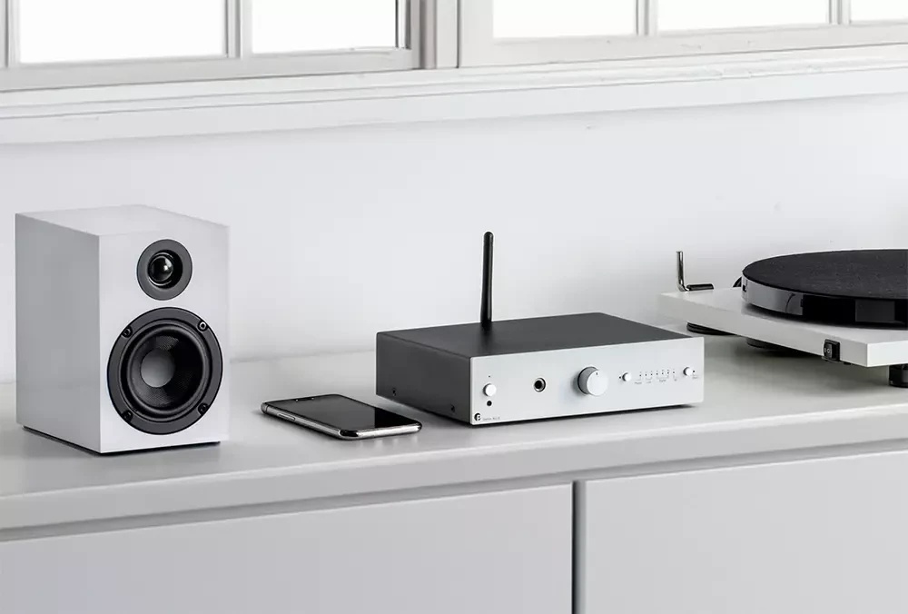 Несмотря на то, что Pro-Ject Stereo Box E ориентирован на начальный уровень техники Hi-Fi, он выделяется богатым набором функций. В арсенале данного усилителя есть все необходимые элементы для создания качественного звука: предусмотрен блок ЦАП, а также фонокорректор для картриджей с подвижным магнитом (MM). Кроме того, для любителей беспроводного звука встроен адаптер Bluetooth с поддержкой кодека aptX HD, который обеспечивает потоковую передачу аудио высокого разрешения.