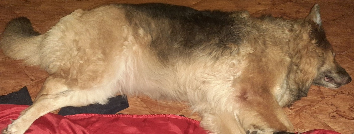 А у бабы с дедом со временем не стало хватать сил и времени ухаживать и выгуливать такую, большую собаку.