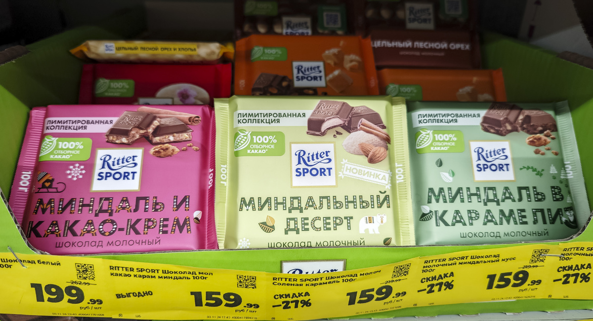 Традиционный по субботам пост о продуктах Вот уже 10 лет я слежу за зимними сериями Ritter Sport, представляете? Ну а раз так, то давайте посмотрим, какие сюрпризы ждут нас этой зимой. А сюрпризов мало. Два вкуса остались с прошлой зимы: «Миндаль в карамели» (самый стойкий вкус, который почти всегда в этой линейке) и «Миндаль и какао-крем» (появился прошлой зимой). И новичок — «Миндальный десерт». Состав, из которого мы узнаём, что это молочный шоколад с начинкой из миндального мусса с пряностями. Основа начинки конечно сахар и пальмовое масло. Пряности тут: корица, кориандр и гвоздика. Форма, как и у других муссовых плиток — 9 крупных долек вместо 16 стандартных. Ну и внутри мягкая муссовая начинка. Главное не класть шоколад в холодильник. На вкус другие муссовые плитки (карамельный и какао) мне нравятся гораздо больше. Тут нет чего-то особенного. Больше похоже на какие-то шоколадные конфеты с начинкой. Все зимние серии Ritter Sport: 2023/24