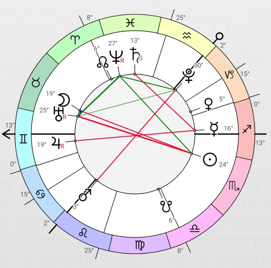 14 февраля 1995 года космос выстроился в поразительно похожую конфигурацию. Тогда мы приближались к другому полнолунию, с Сатурном в тех же 13 градусах созвездия Рыб, что и сегодня, с Венерой в Козероге и Марсом во Льве.