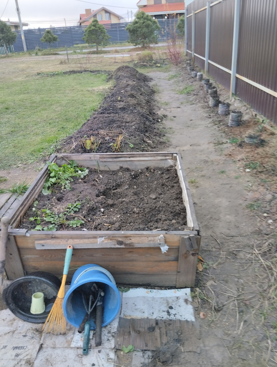 Привет, друзья! Я вчера прибрала на своём "смешном огороде", хотя там и так все прибрано было. Вдоль забора стоят вкопанные пластиковые баклажки из под воды. Их я постепенно наполняю по осени растительными остатками, пищеотходами и сверху присыпаю землей. Так я подготовила посадочные места на весну под фасоль, горох и конечно же кабачки 🌽 Единственную длинную грядку-гребень, где у меня растут кабачки и тыквы, я постепенно тоже подготовила к весне - закопала внутрь все сорняки с участка, траву и прочие растительные остатки, засыпала золой из печки, сверху небольшой слой земли с той же грядки. На всем этом великолепии по весне посажу кабачки и тыквы. Так я растительные остатки утилизирую и одновременно удобряю грядки, никаких куч для перегноя у меня на участие нет- все сразу в грядки идет. Часть вёдер, тех, которые пришли в негодность , я выкинула. Это тоже ведра, которые от ремонта остались, их использую в своём "смешном огороде" в течении лета. Опять же, бесплатно и вы