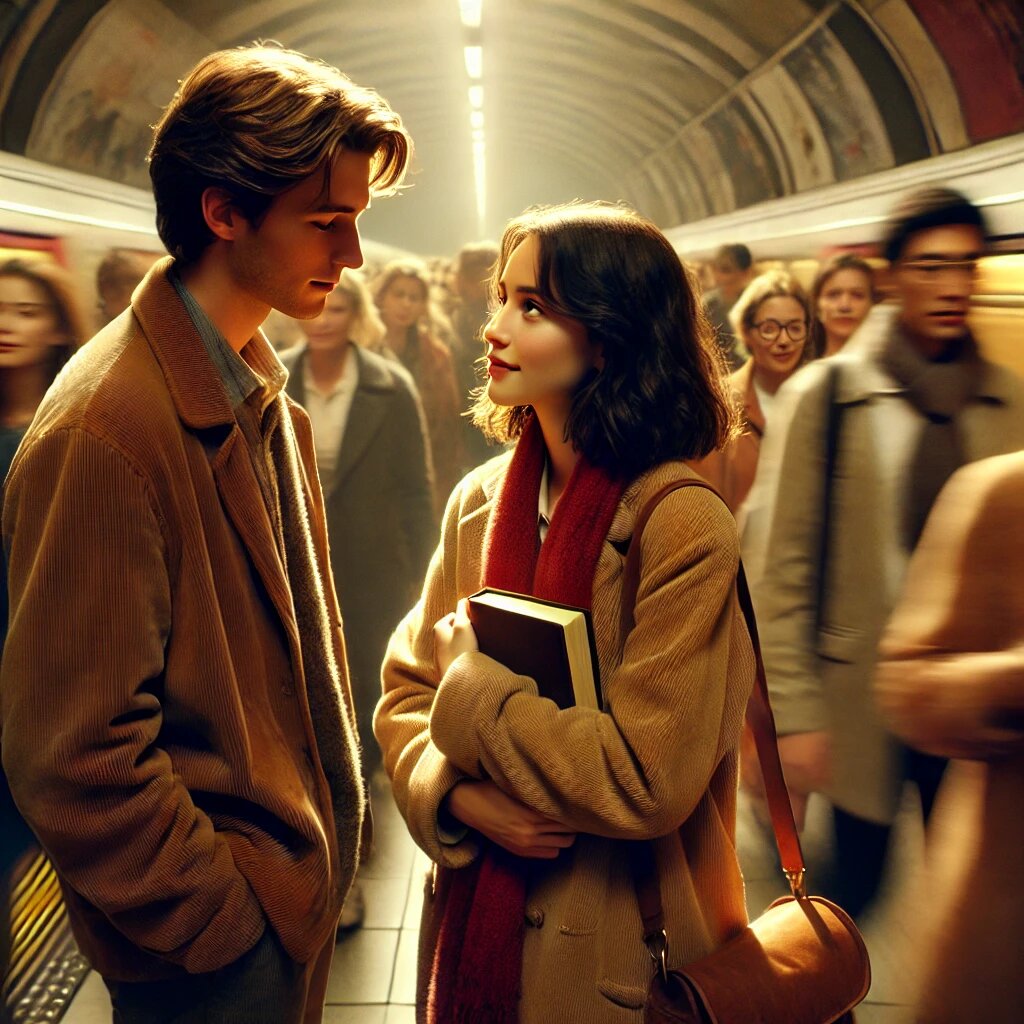 Когда поезд подскочил на старом рельсе, кто-то резко налетел на неё, вырвав книгу из рук. Она вздрогнула и повернулась, чтобы ответить недовольным взглядом, но встретилась с тёплыми карими глазами. «Извините, я не хотел!», — пробормотал незнакомец, и они оба застыли на секунду, как будто весь мир вокруг замер. Его лицо было одновременно знакомым и чужим, словно где-то в глубине памяти она уже видела эту улыбку. Внутри у неё кольнуло от неожиданного волнения.