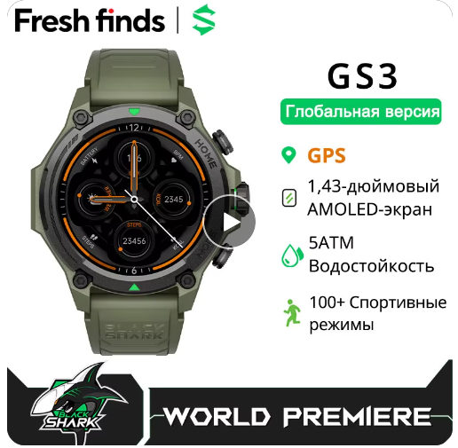 В мире носимых технологий недавний выпуск смарт-часов Black Shark GS3 вызвал настоящий ажиотаж. Являясь частью экосистемы Xiaomi, Black Shark известна тем, что сочетает в себе высокую надежность и передовые технические возможности. Вот все, что вам нужно знать об этом последнем новшестве. Дизайн и долговечность Умные часы Black Shark GS3 имеют дизайн, отражающий эстетику их предшественников, Black Shark S1 Pro и S1 Classic, с прочным круглым спортивным циферблатом, выполненным в ярких черном и зеленом цветах. Это устройство отличается не только внешним видом, но и долговечностью. GS3 соответствует стандартам MIL-STD с 15 протоколами для обеспечения долговечности, включая устойчивость к экстремальным температурам и условиям эксплуатации, что делает его подходящим выбором для предприимчивых пользователей. Передовые функции Black Shark GS3 оснащен 1,43-дюймовым AMOLED-дисплеем, обеспечивающим четкое изображение. Что отличает GS3 от других, так это встроенный GPS-приемник и возможность отс