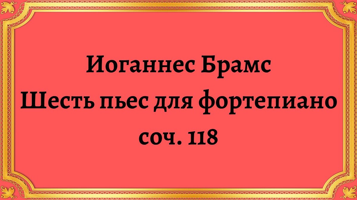 Шесть Фортепианных Пьес, соч. 118, без сомнения, одно из самых значительных произведений Брамса. Это шесть характерных пьес, каждая со своим особым настроением и стилем, отражающих широкий спектр композиторских талантов Брамса. Шесть пьес следующие: